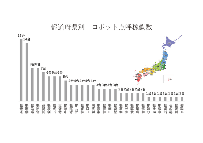 2)ロボット型自動点呼e点呼セルフ Typeロボケビー稼働数と地域