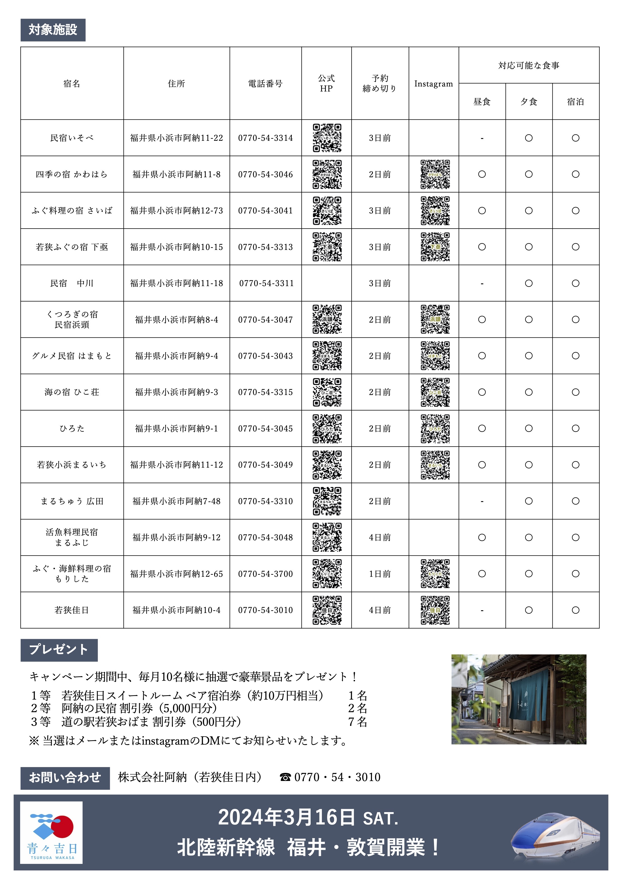 お問い合わせ:株式会社阿納 0770-54-3010(若狭佳日内)