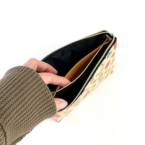 このポーチ、3ポケットに分かれているので、仕分けができて実用性もある人気のフォルム。