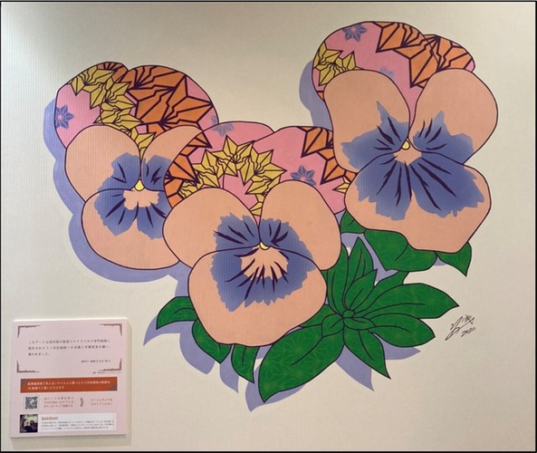 今回は十三市民病院が所在する大阪市淀川区の花「パンジー」をベースにBAKI柄と掛け合わせたアートを施してくださいました。