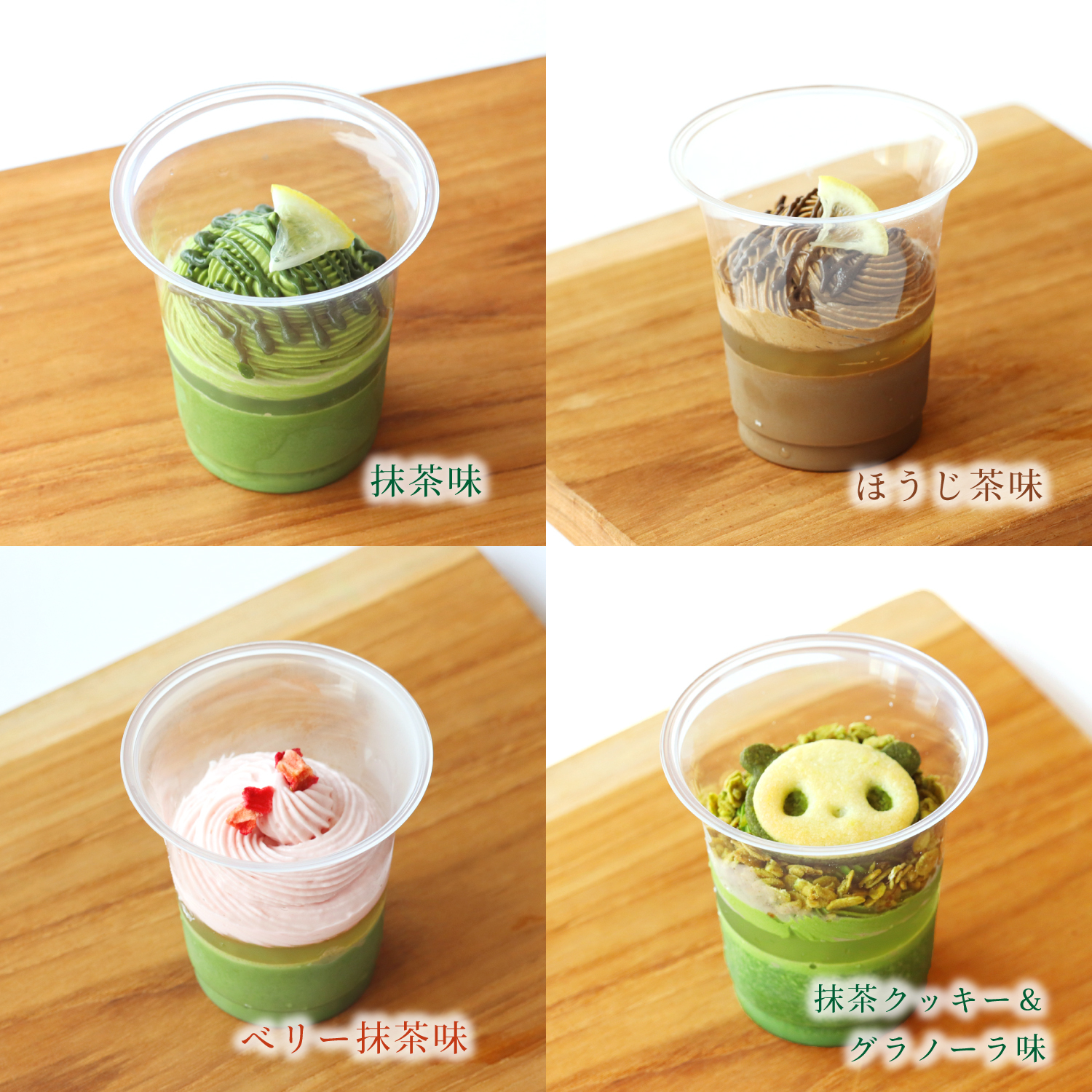 内容 :4個入り(抹茶味、ほうじ茶味、ベリー抹茶味、季節限定・抹茶クッキー&グラノーラ味)