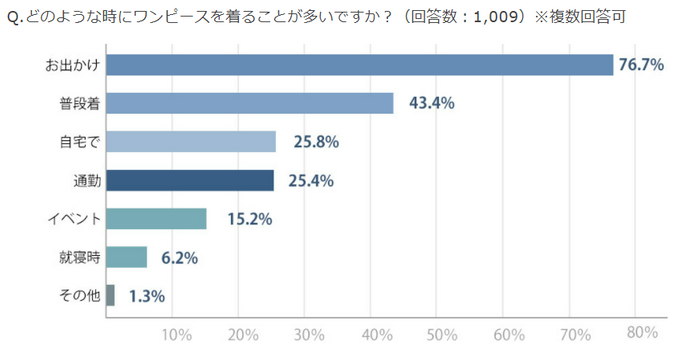 そんな絶対的人気を誇るワンピースですが、具体的に、どんな場面で着用されて、どんなスタイルのものが好まれているかを見ていきます。