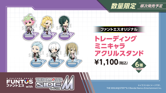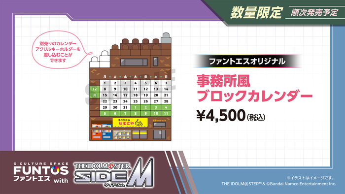 6人の描き下ろしイラスト・描き起こしミニキャライラストを使用したグッズや事務所風ブロックカレンダー、各アイドルイメージのコラボドリンクを販売!