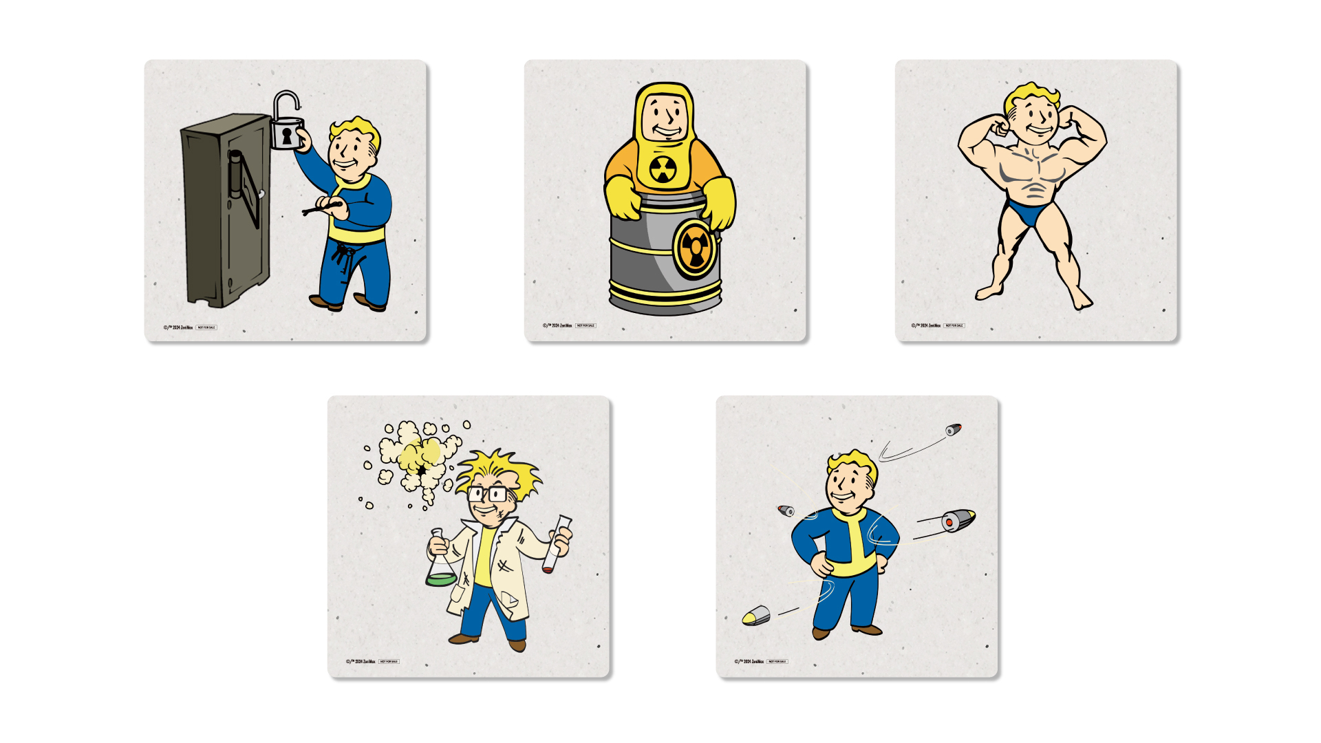 さらに期間中、「INFOLENS GEEK SHOP オンライン」にてFalloutグッズを5,000円(税込)以上ご注文いただくごとに、Fallout紙製コースターを全5種の中から1枚ランダムでプレゼントいたします!