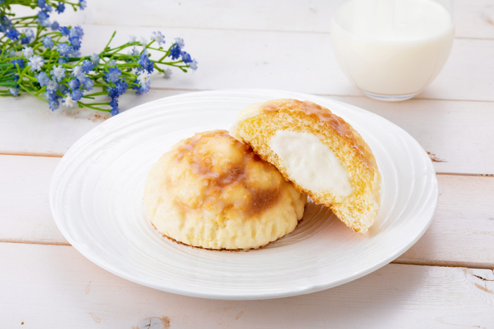 ライフプレミアムの人気商品で、年間100万本以上販売している「北海道サロベツ豊富町厳選牛乳」を使用。日本最北端の宗谷他区豊富町の産地限定酪農家の乳牛から搾った牛乳で、ほんのり甘く濃厚な味わいが特徴です。その贅沢な牛乳をメロンパンのクッキー生地とクリームに約23%とふんだんに使用しました。クリームは牛乳のコクを引き立てた濃厚な味わいに仕上げました。