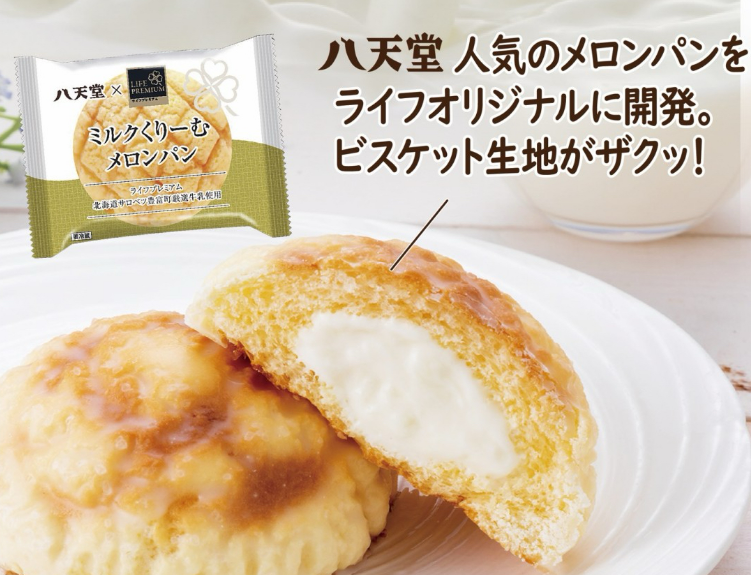 【首都圏ライフ】八天堂✖ライフが夢のコラボ!「ライフプレミアム ミルクくりーむメロンパン」新登場