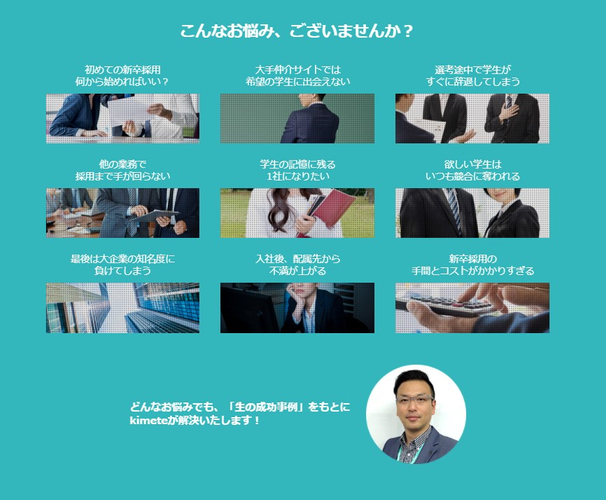 その中から、新卒採用をまだ行ったことがない、活動したいが上手くいかないといった悩みを抱える中小企業の経営者・採用担当者の皆さまに対し、新卒採用に力を入れ、即戦力に育て上げるお手伝いをする『採用研究会 kimete』についてご紹介いたします。