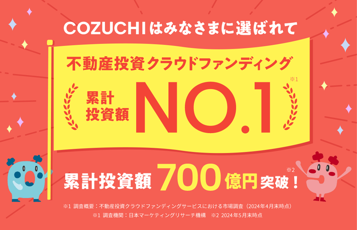 【COZUCHI】不動産投資クラウドファンディング 累計投資額No.1を達成!700億円を突破!