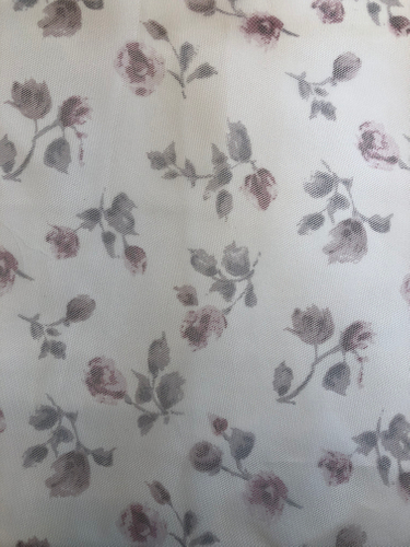 チュール素材をたっぷりと使用しました。透け感があるので、プリント柄をさらに柔らかな表情にしています。