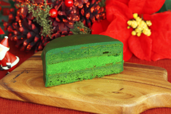 内側のスポンジケーキは抹茶チョコを入れて焼き上げました。しっとりと焼き上げたスポンジケーキだけでも濃厚な抹茶の風味を楽しんでいただけます。