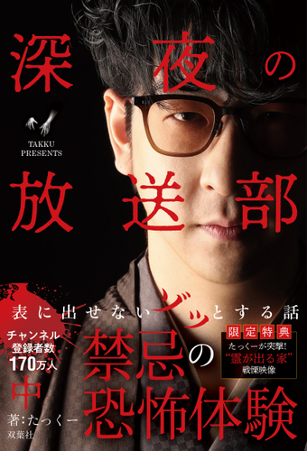 昨年発売された『深夜の放送部 上 ~消去覚悟の怖い話~』に続く第2弾となる今作では、“表に出せないゾッとする話” をテーマに豪華ゲスト、そしてたっくーが執筆した珠玉の怪談全33話を収録!