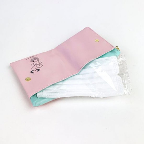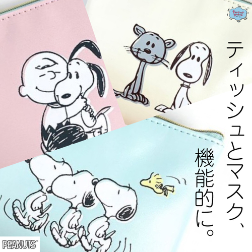 ティッシュとマスクを持ち運べる今にマストな形。スヌーピーの新作ポーチは得意のミントカラーとパステルピンク、アイボリーの3色で。