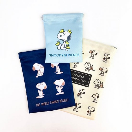 スヌーピーから新作のポーチや巾着をご案内しました。