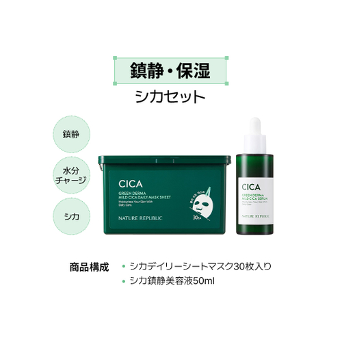 ネイチャーリパブリックがおすすめする、デイリーシートマスクと美容液の組み合わせで効率よくお肌のケアができるスペシャルケアセット。トーンアップ、鎮静、弾力の中からお好きなセットをお選びいただけます。