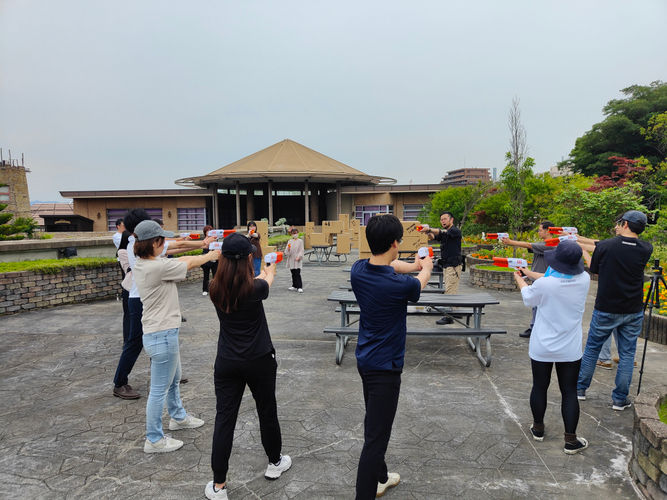 赤外線装置を使ったサバイバルゲーム(サバゲー)を通して組織力や判断力さらにはチームワークを高めることを目的としています。どこから攻めるのか、誰がどの役割を果たすのかなどの状況判断や意思疎通を瞬間的に必要とするため、個・組織の殻を破ることが期待できます。また、弾ではなく赤外線を使用することから、安全かつ初心者でも楽しめるため、幅広い世代の方が体験できます。
