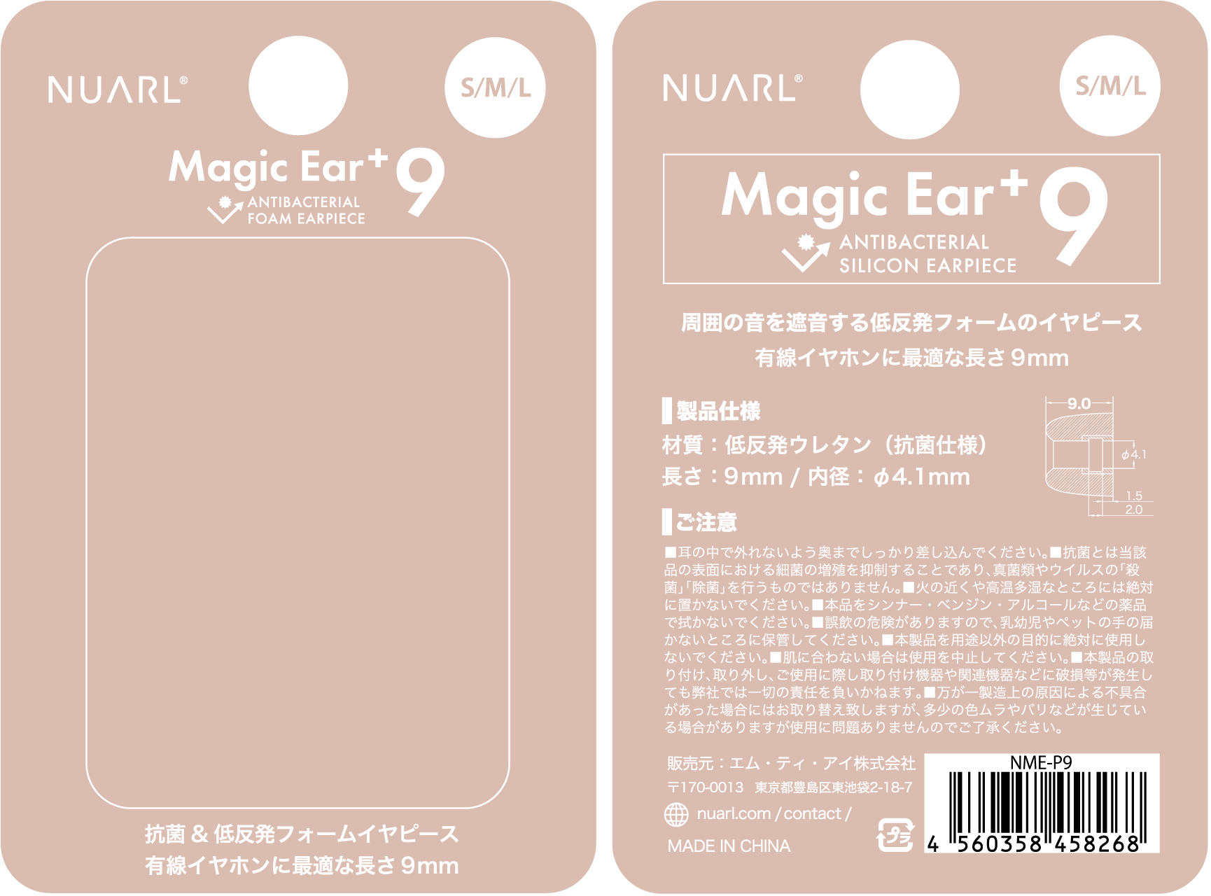 通常の「Magic Ear+9」よりも短尺の7mm長にすることで、NUARLの完全ワイヤレスイヤホンに装着して充電ケースに入れてもイヤホンの充電に問題を起こしません。