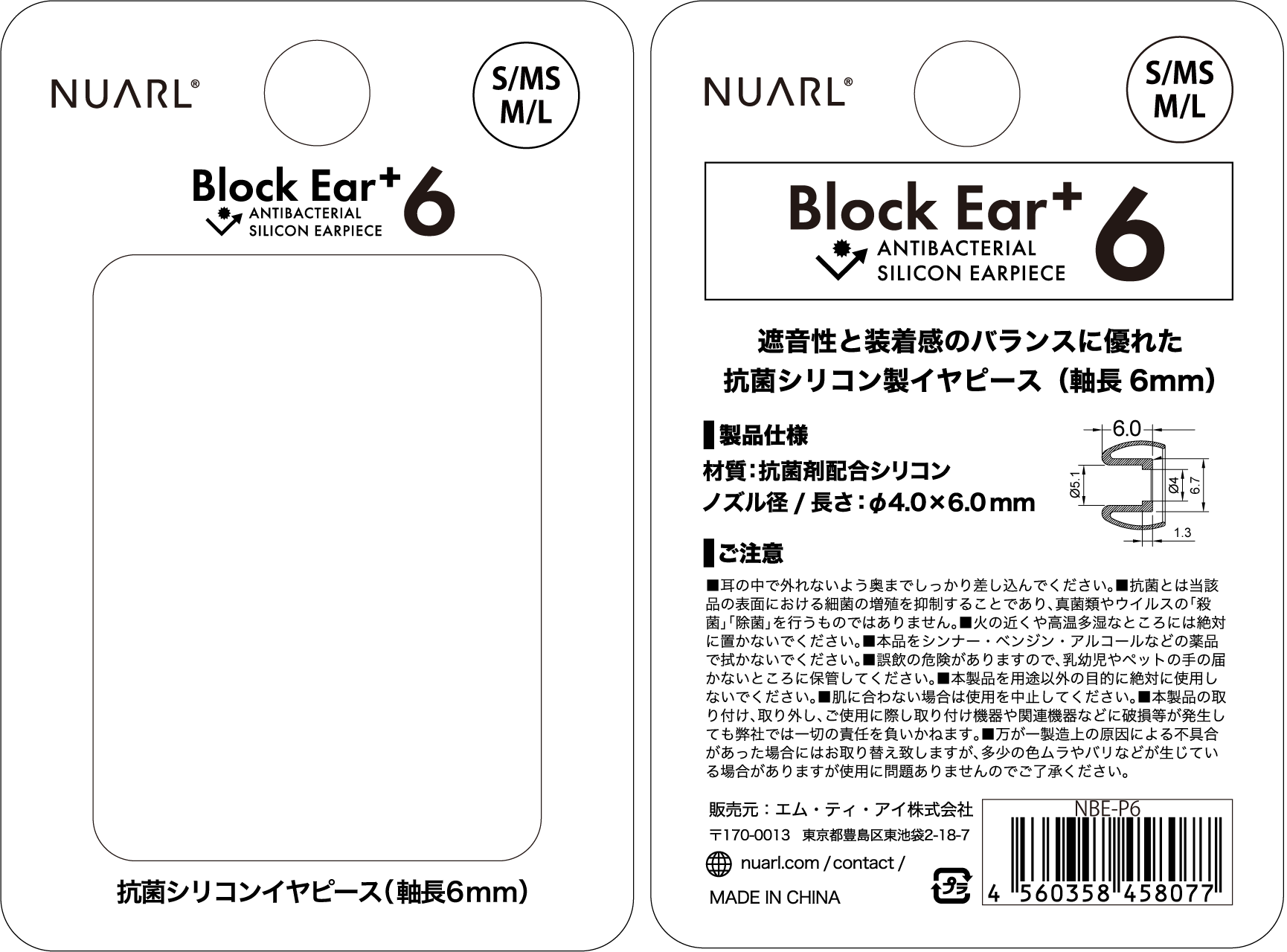 「Block Ear+6」は、装着感と遮音性を両立した長さ6mmのシリコン・イヤピースです。耳穴への負担を軽減する独自の形状に加え抗菌性をも有し耳に優しいイヤピースです。今回、どんなデザインのイヤホンにも合わせやすい乳白色にカラーが変わりました。