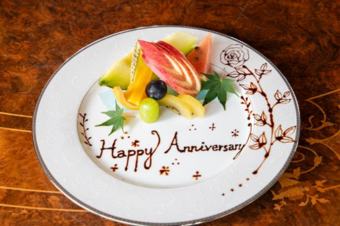 青の舎では、大切な方との記念日にお愉しみいただける『アニバーサリープラン』を提供しています。二人の大切な記念日を彩る“乾杯ドリンク”や、青の舎オリジナルの季節のフルーツを使用した“メッセージ付きフルーツプレート”をプレゼント。また、可愛いお孫様との再会やご両親とのお顔合わせなどお祝いの日にオススメの「最上階テーブル席確約プラン」も用意しております。
