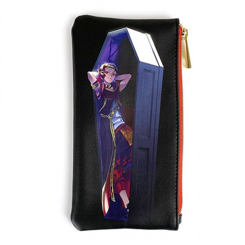 お馴染みの棺デザインのスリムポーチです。各寮の寮長のキャラクターがイラストになっていて、カラーもクールなブラックを基調としています。