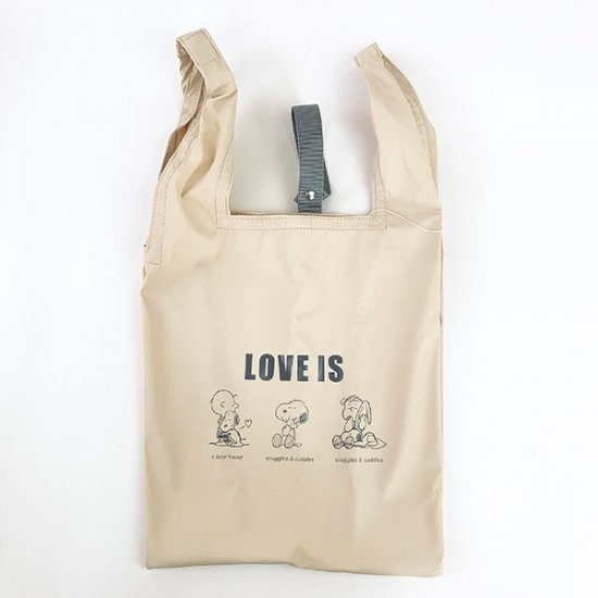 最後は、アイボリーにハグデザインのエコバッグです。スヌーピーとチャーリーブラウンのハグしている姿、かわいいんですよね~♡ライナスはもちろん、ブランケットLOVEですね。