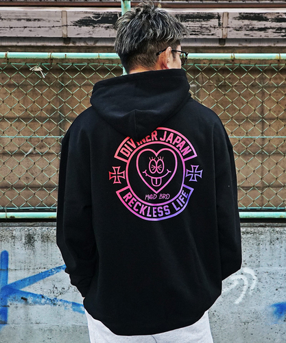 シンプルなボディであるがゆえに、レッドからパープルへと移り変わるグラデーションカラーが目を惹きます。第一弾よりもやや大きめのサイジングにすることで、MADBRO特有のヌケ感と、ストリートテイストをさらにプラスしました。