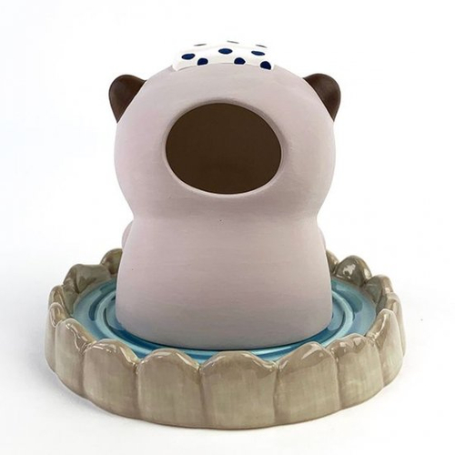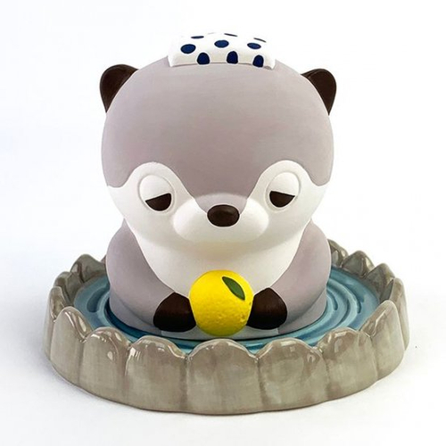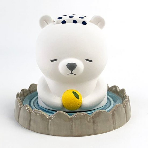立体的なねむねむアニマルズ。頭に温泉のトレードマークを乗せて手には柚子かな?気持ちよさそうに温泉に浸かる様子がほっこり癒されますね。こちらはインテリアとしても使える加湿器です♪本体部分は素焼きで出来ています。