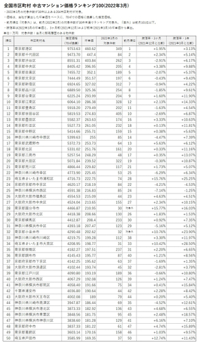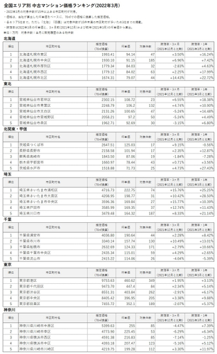 「マンションレビュー」2022年3月 全国市区町村 中古マンション価格/騰落率ランキング100を発表
