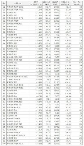 ・100位以内の市区で、前年(2021年3月)と比較して価格が上昇したのは92市区。また、3ヶ月前(2021年12月)と比較して価格が上昇したのは64市区。