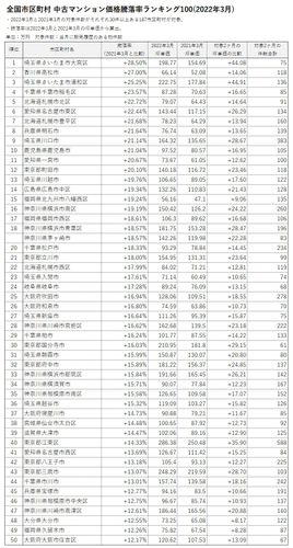 南関東(東京圏) 埼玉県さいたま市大宮区(1位) +28.50%
