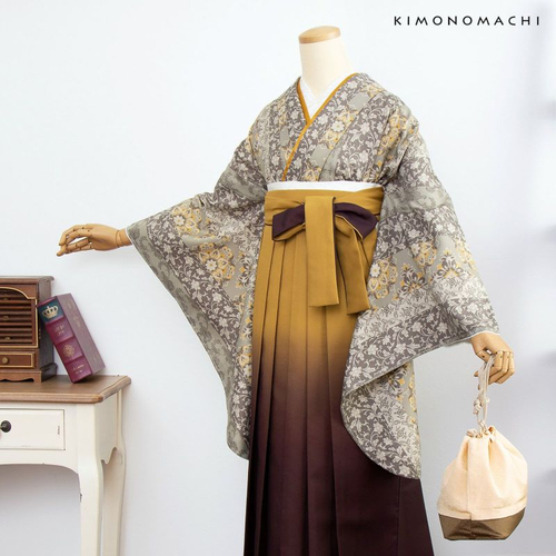 袴と合わせて、卒業式・謝恩会にぴったりの袴スタイルに。 普段着着物として、長めの袖でアンティーク風な着こなしに。