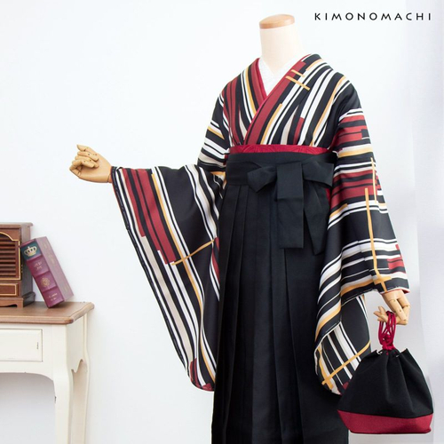本商品は同社の大人気オリジナル商品「きもの福袋」の、袖が長い二尺袖タイプ。巾着はレトロモダンなデザインの着物に合うように、サイズや形から、細部に至るまでこだわった日本製。卒業式だけでなく、ちょっとお出かけというときにも便利。いずれも京都きもの町オンラインストアにて購入が可能。