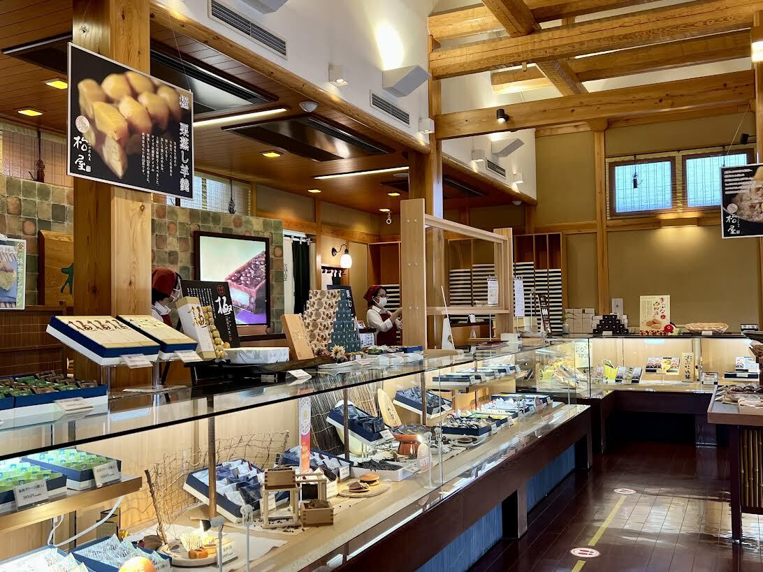 昭和30年創業。「京都の町屋」をイメージし栃木の杉と土、軒灯看板が印象的な外観。お客様にゆっくり商品を選んでいただけるよう創られた、「広い店内」と「高い天井」。歳月を重ねるたびに魅力が増す店内を、お菓子を選びながら楽しんでいただければと思います。