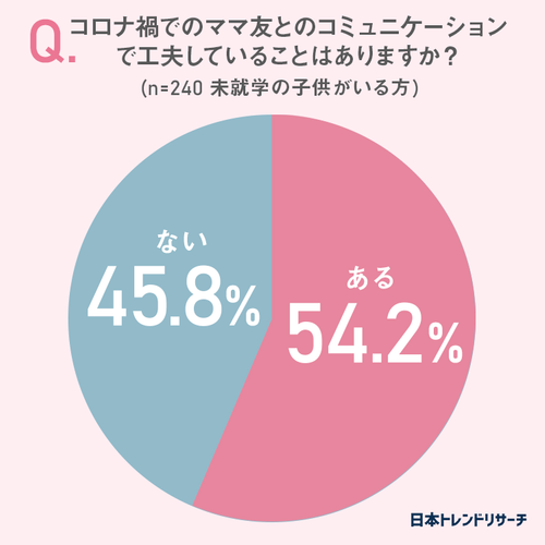 ママ友がいる方の54.2%がコロナ禍でのママ友とのコミュニケーションで「工夫していることがある」という結果になりました。