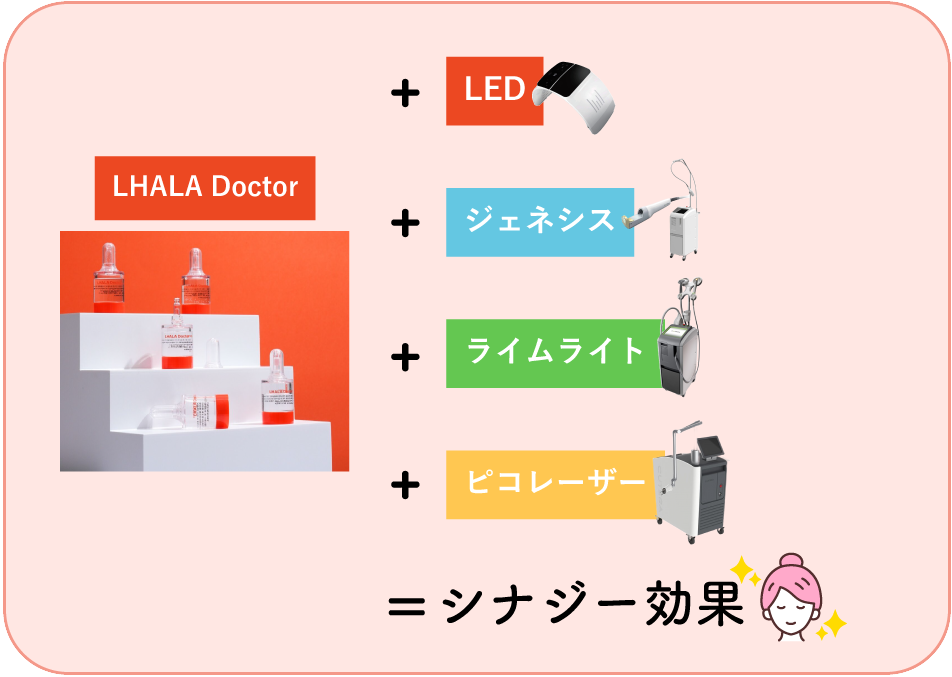 ・レーザーやIPL(光治療)、LEDデバイスとのシナジー効果がある