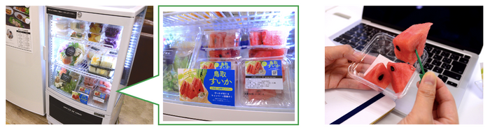 そこで、実食を伴うプロモーションを安心・安全にできる場所として、当社の広告・マーケティング事業「OFFICE DE MEDIA(オフィスでメディア)」が連携し、オフィスに設置した「オフィスでやさい」の冷蔵庫にて鳥取すいかのPRを実施いたしました。