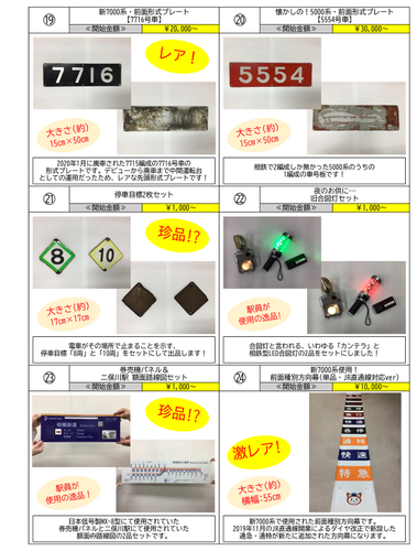 ・落札は、「1人(1アカウント)3品まで」とします。ただし「機械付方向幕」「方向幕」については、多くのお客さまに落札いただくため「お1人1品まで」とします。