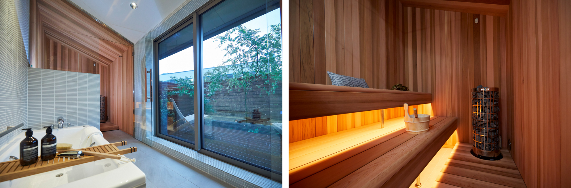 暮らしを整える機能空間として、本格的なフィンランドサウナ付きのバスルームを配備。サウナ・水風呂バス・整うガーデンスペースが連続し、本格サウナが楽しめる空間づくりをしています。