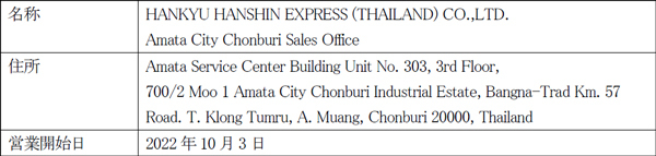 当社タイ法人であるHANKYU HANSHIN EXPRESS (THAILAND) CO.,LTD.は、バンコクの南東約70kmに位置するアマタシティ・チョンブリ工業団地内に新たに営業所を開設し、10月3日より営業を開始します。