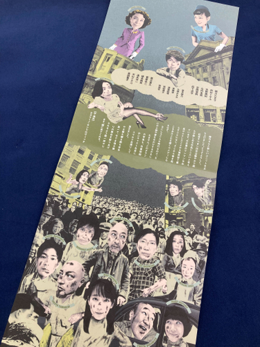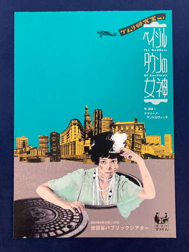分厚くまるでパンフレットのような紙質と、珍しいたて開きのデザイン。中には階級社会を表すかのように、キャストの方々の扮装写真が入っており、ストーリーの内容がキャッチできます。こちらの写真は出演者の方々、それぞれの自撮りとのことで、まさに「コロナ禍の演劇」を表す象徴的なチラシでした。
