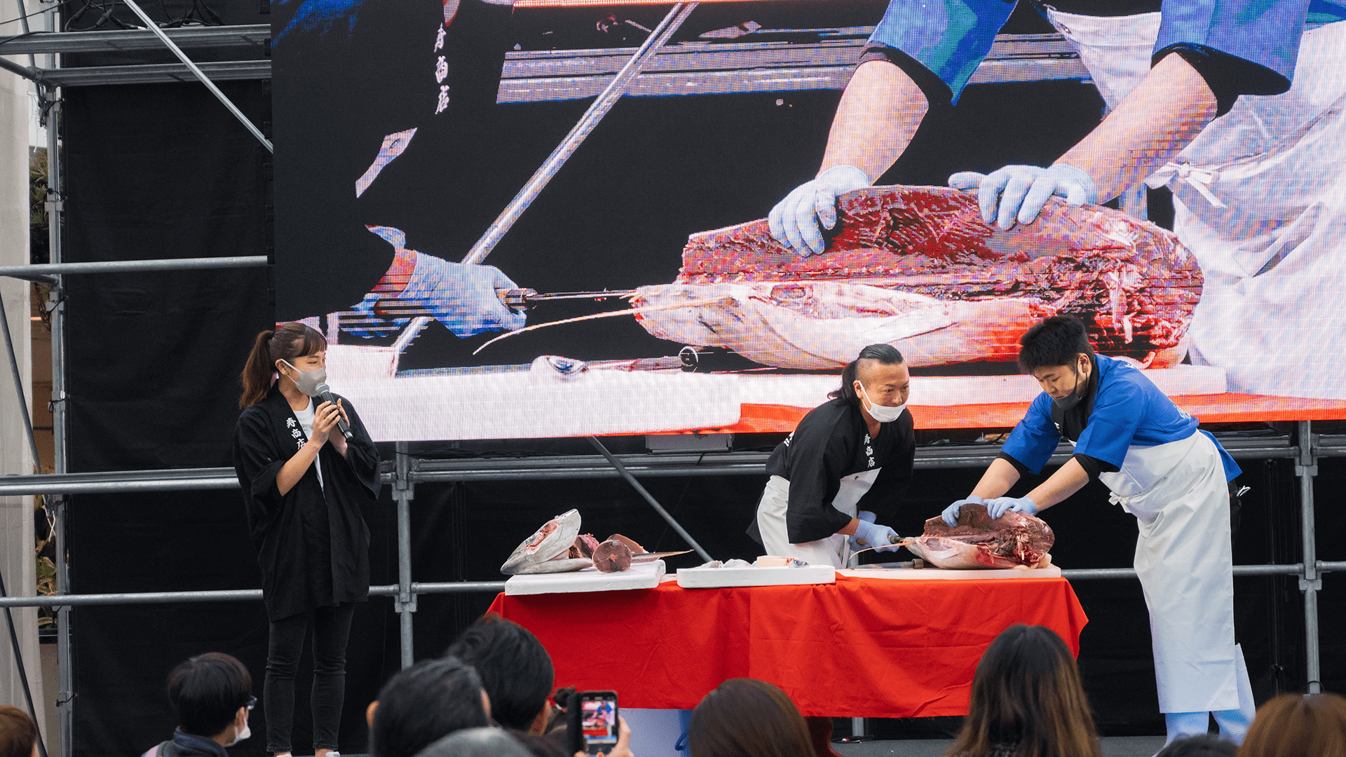 「挑戦エリア」ではステージを特設し、ティーンズロック(高校生バンド)やキッズドラマー・キッズダンサーによるパフォーマンス、高校生奇術部によるマジックショーなどさまざまな催しが繰り広げられます。また昨年に続き、大好評のマグロの解体ショーや、子ども向け番組「シナぷしゅ」の挿入歌「マンマのうた」で有名な名古屋出身のシンガー・海蔵亮太のミニライブなども楽しめます。