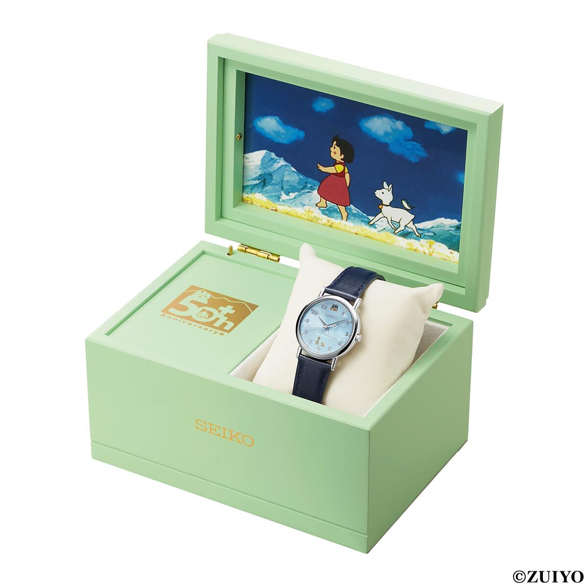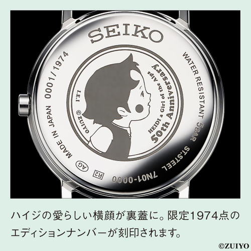 アルプスの美しい情景と心温まる物語の世界へと誘うセイコー製の記念腕時計です。