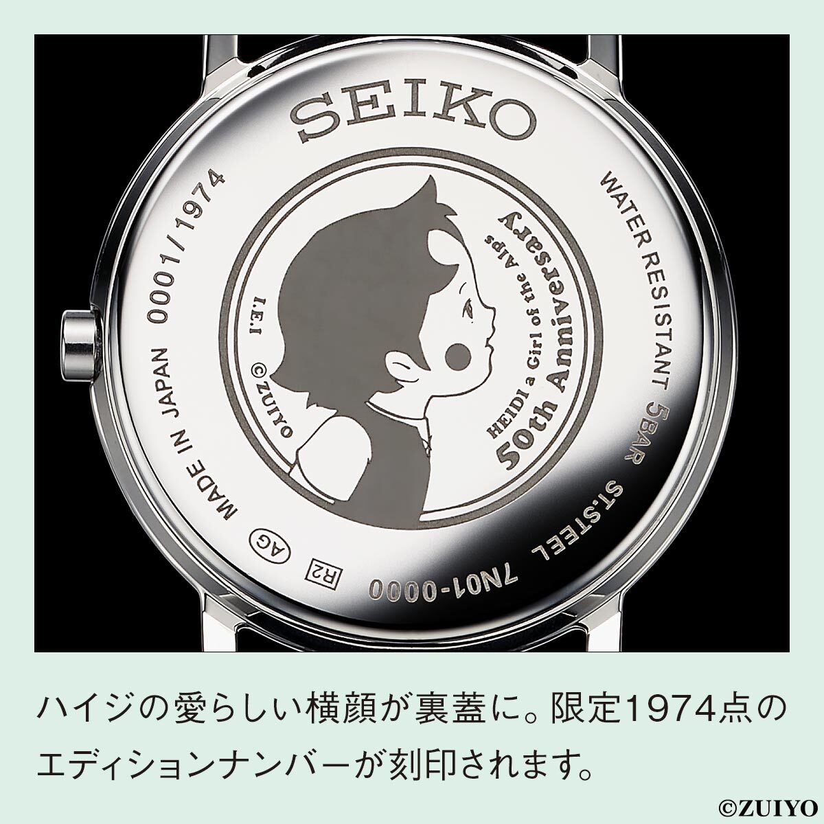 裏蓋にはハイジの横顔と限定1974点のエディションナンバーを刻印。