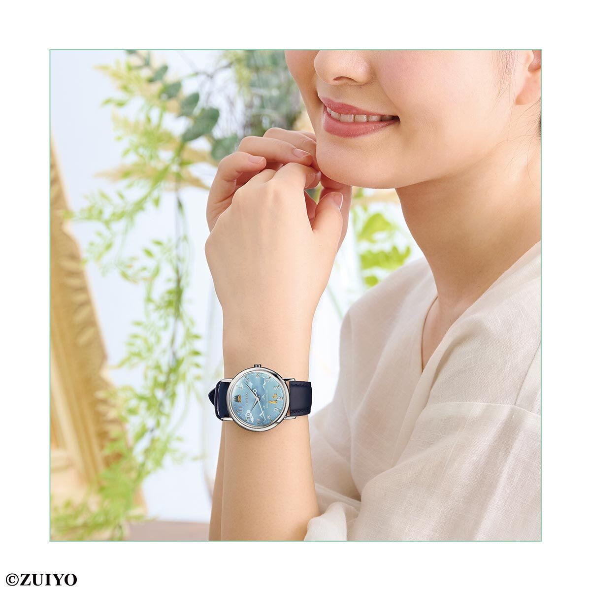 ■空色の文字盤には雪をいただいたアルムの山とぽっかり浮かぶ白い雲。革バンドには空色に美しく映える深いネイビーブルーの牛革がセレクトされました。