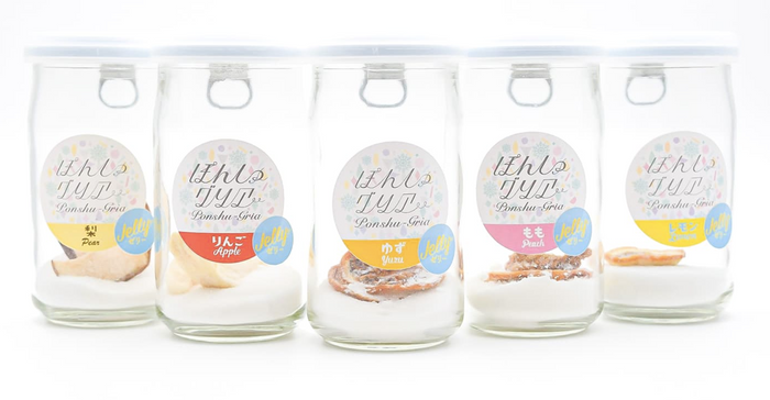 日本酒ゼリーの素「ぽんしゅグリアゼリー」は、カップにフルーツや甜菜糖、アガーなどが入った瓶入り商品で、こちらの商品に、お好みの日本酒とお水を入れてレンジで1分あたため数時間冷蔵庫で冷やすだけで、ご自宅で簡単に日本酒ゼリー作りを体験していただくことができる商品です。