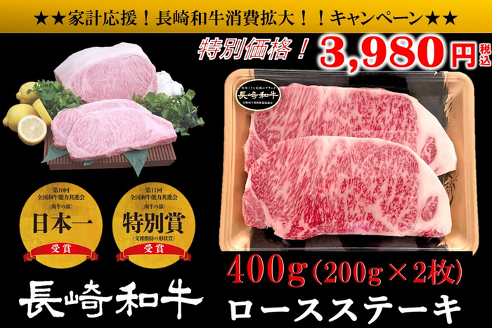 キャンペーンでは、通常¥5,980(税込)で販売している「長崎和牛ロースステーキ(約400g)」「長崎和牛肩ローススライス(約500g)」「長崎和牛焼肉用(約500g)」の3商品を数量限定で¥3,980(税込)で販売しています。現在JAタウンでは「国消国産お得なキャンペーン~送料お客様負担なし~」を実施しており、この商品も対象商品となるためお客様の送料負担はありません。