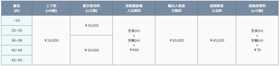 ※別途、通関費用・曳航費用・その他作業の費用は含まれておりませんので、詳しくはお問い合わせください。