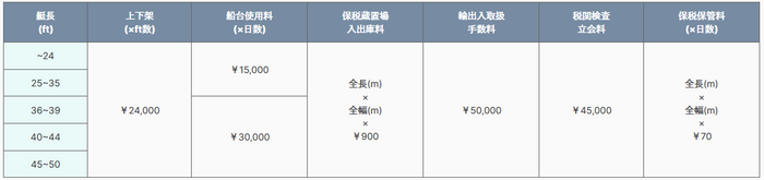 ※艇長(ft)によって料金が変動します。