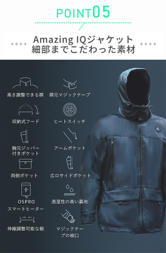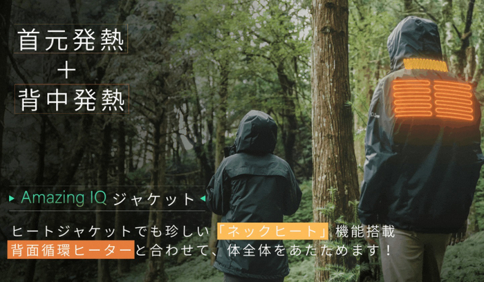 首元から効率よく加温。洗濯可能かつ10以上の収納・耐水・防風の アウトドアパーカー「Amazing IQ」の先行販売を開始