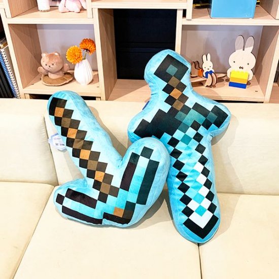 リビングが冒険の場に?!突然のマイクラごっこにも対応すべく、ダイヤモンドの剣とツルハシをクッションとして装備しよう☆