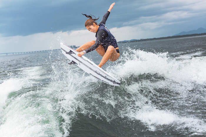 琵琶湖を中心に活動する、女性ウェイクサーフィンの第一人者。プロウェイクサーファーとしての選手生活を送りながら、ウェイクサーフィンのコーチングや、センチュリオンボートの広告活動なども行っている。